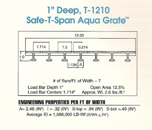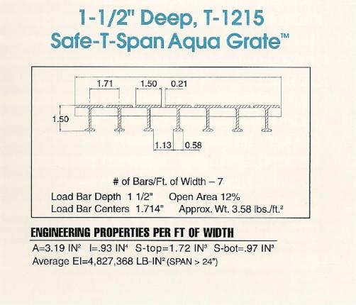 is specially designed for use around swimming pools, theme parks, marine docks and fountains. It's wide walking surface and small open areas provide the perfect combination of excellent drainage and slip resistance. The fine gritted surface and light gray coloring provide a comfortable walking surface even for bare feet. The composite construction of "Aqua-Grate" means it will never rust, rot, or corrode in either salt water or chlorinated applications. UV inhibitors insure "Aqua-Grate" provides years of outdoor service in the harshest of environments.